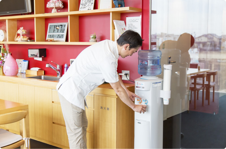 診察の合間や手術のあとなど、お水を飲みたいときに、ごくっと飲める。