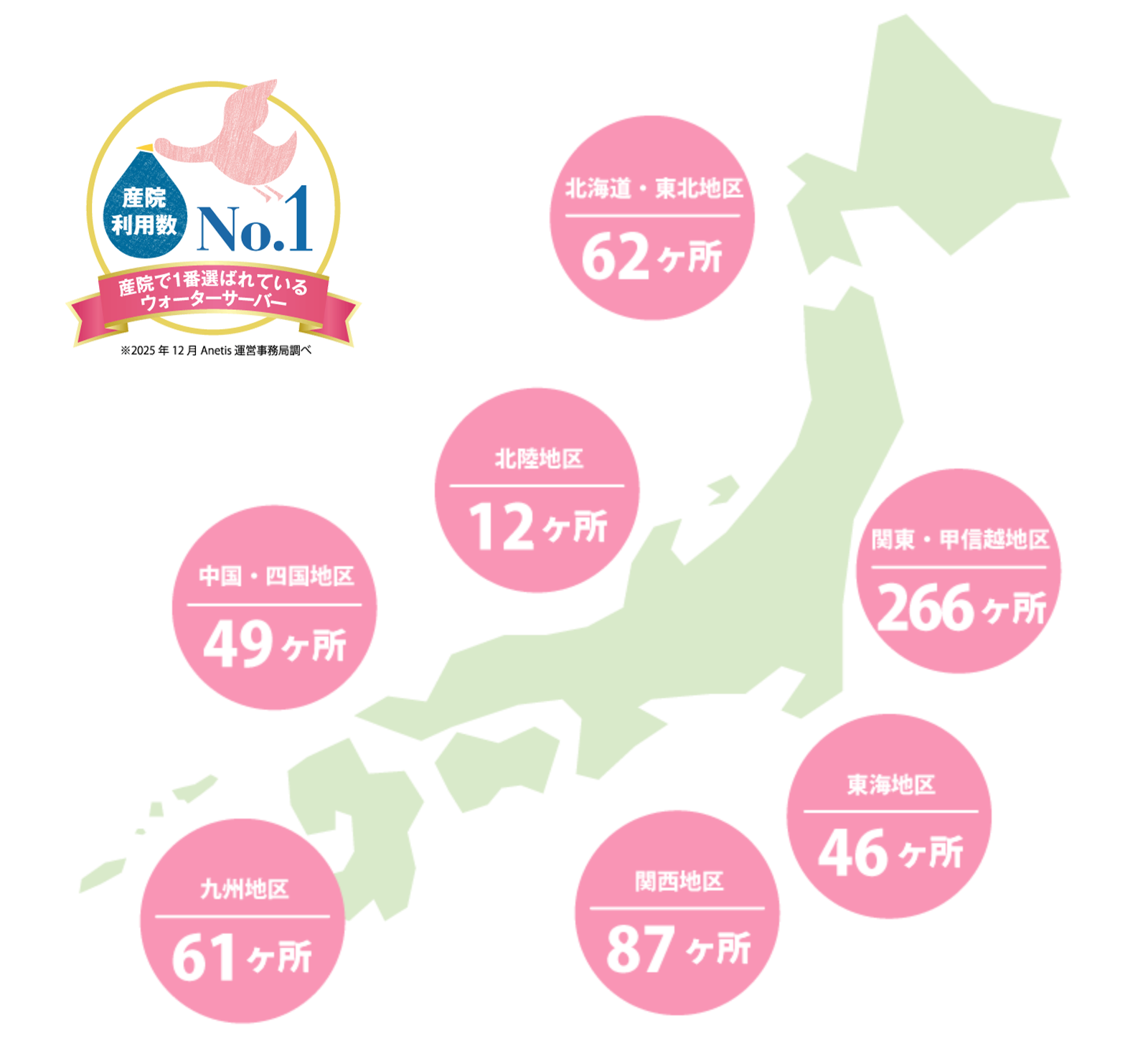 全国の多くの産院に置かれているクリクラサーバー。妊婦さんやママをはじめとして、産院の先生やスタッフの方にも飲んでいただいています。