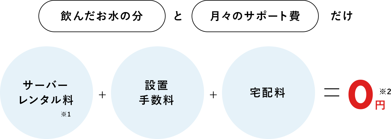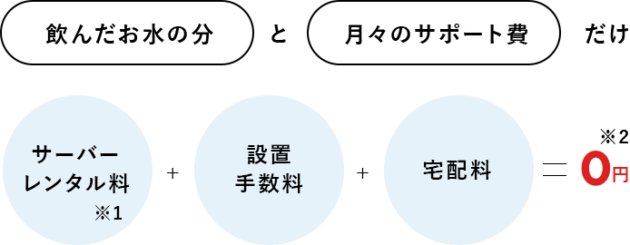 | 水の価格 | サーバーレンタル料 | ウォーターサーバーの 定期メンテナンス |